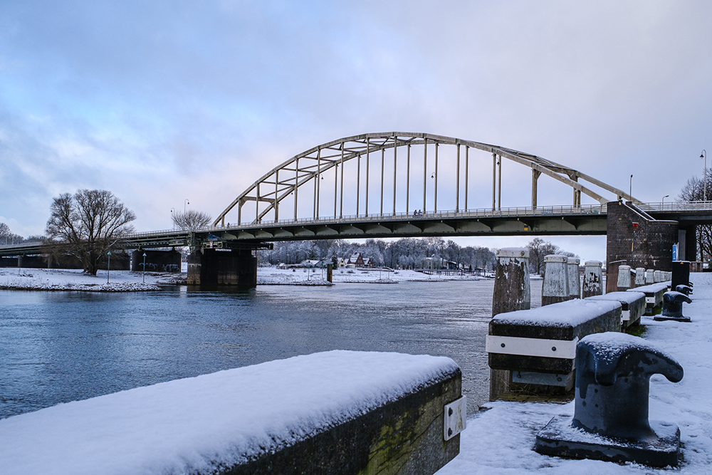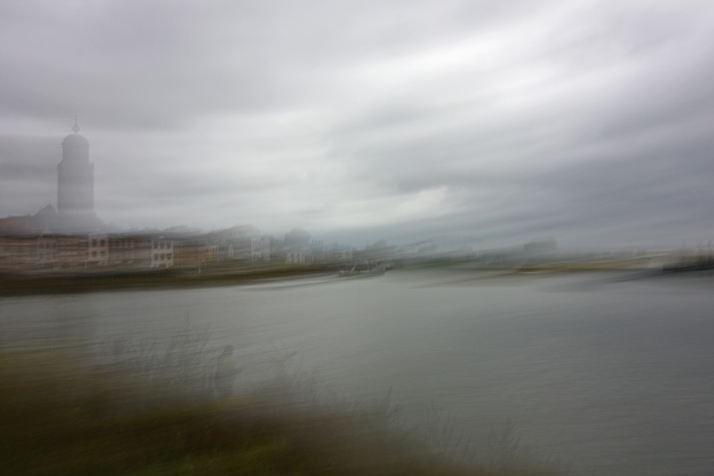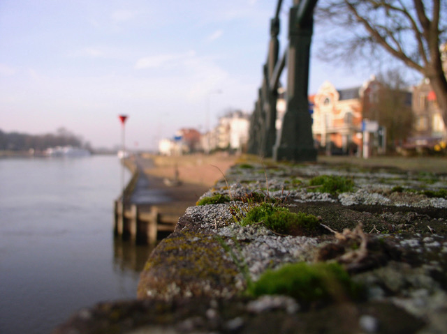 We zien de robuuste pijler van de spoorbrug (?) met graffiti op de voorgrond die je oog leidt naar de rivier en daarachter de skyline van de stad Deventer, mooie opbouw van de elementen, overal is iets te zien. Het onderwerp De IJssel als levensader staat fraai in beeld.
