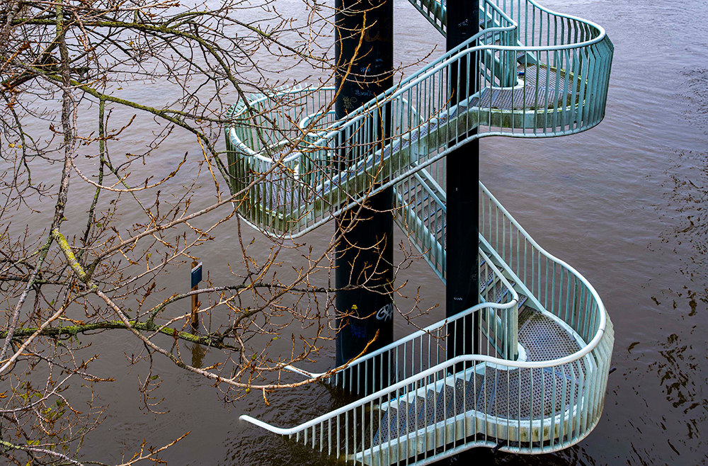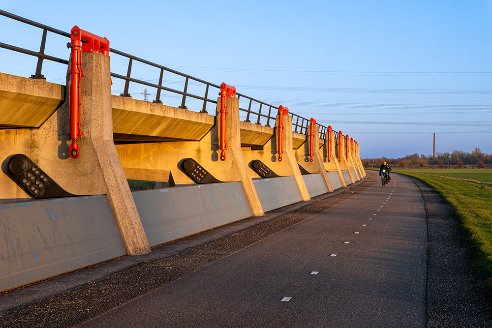 De hele serie van 24 foto’s is ook een ode aan het menselijk vernuft en kracht om ons tegen het water te beschermen. Of het water-als-hindernis te overbruggen. Letterlijk. Dat zijn zeker de pluspunten die we terugzagen in de foto’s.