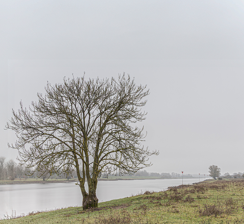 Foto nr 7 van Dick Oele heeft de 1e plaats Een compliment aan de maker. Het kan welhaast geen toeval zijn dat de maker deze foto wilde maken voor deze wedstrijd. Wat alles zit er wel in: waterwerken die uiteindelijk de mens moet beschermen als het water te hoog gaat worden! Niet alleen de waterkering, een pronkstuk van de overheid, maar ook dat de hoogspanningsmasten hoger moesten komen te staan. Ja, dat verhaal moest dus in een foto verteld worden. Knap gedaan. Het lijnenspel is het extra cadeautje, goed gezien. Maar het grootste compliment is toch wel dat fijne warme licht!